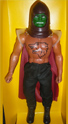 Caratteristiche Principali Gambe tenute da sfere Slip bianco Mani chiuse Meccanismo doppia faccia Carnagione scura Contenuto del Box Action Figure Mantello rosso Pantaloni neri Anfibi neri